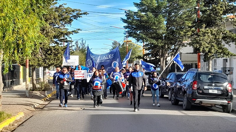 Trabajadores y trabajadoras judiciales de Pico Truncado y Caleta Olivia marcharon este miércoles por la mañana para continuar exigiéndole al gobernador Claudio Vidal que cumpla con los acuerdos paritarios firmados