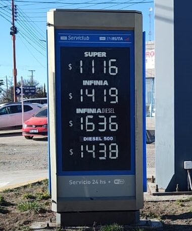 Con esta nueva suba, la nafta super de YPF pasó de $1.093 a $1.116 (2,10%), mientras que la premium Infinia saltó de $1.398 a $1.419 (1,5%). Además, el combustible Diesel 500 subió de $1.410 a $1.438 (1,98%) y la Infinia Diesel ascendió desde los $1.608 a los $1.636 (1,74%).