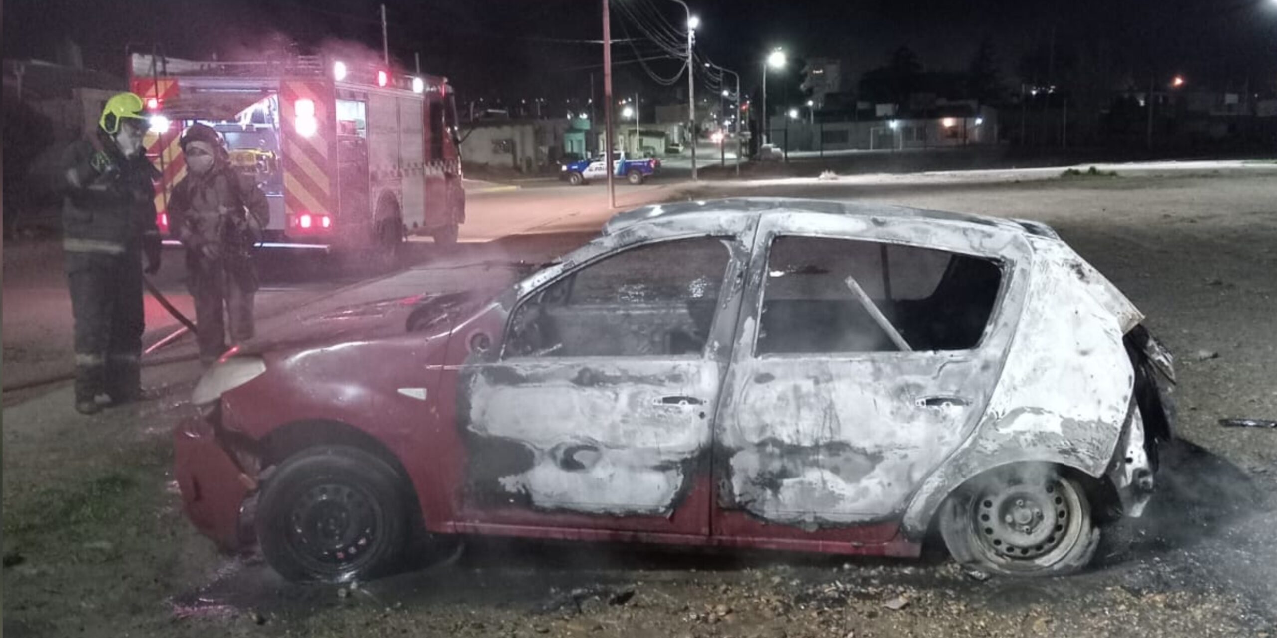 El aviso ingresó a través del Sistema de Emergencias 911 y acudió personal de la Comisaría Segunda, quienes constataron que se trataba de un Renault Sandero sin dominio, motor ni batería, que se hallaba en pleno proceso de combustión.