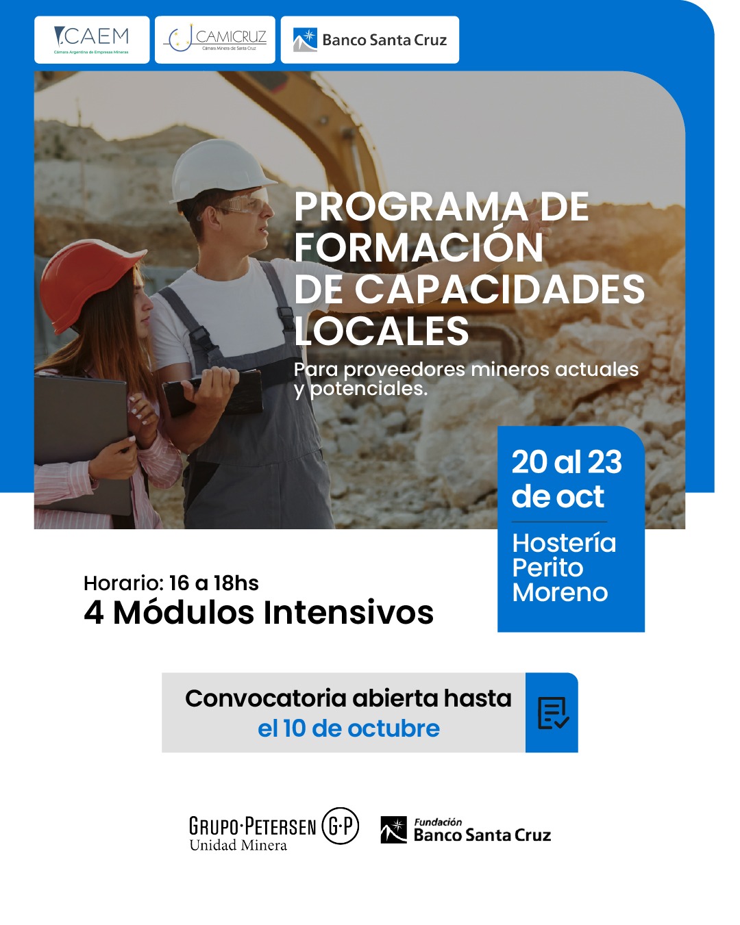 Con el lema “¡Potenciá tu empresa con la industria minera!”, el programa busca formar habilidades locales, acompañando a las empresas santacruceñas en el desafío de vincularse de manera efectiva y competitiva con el sector.