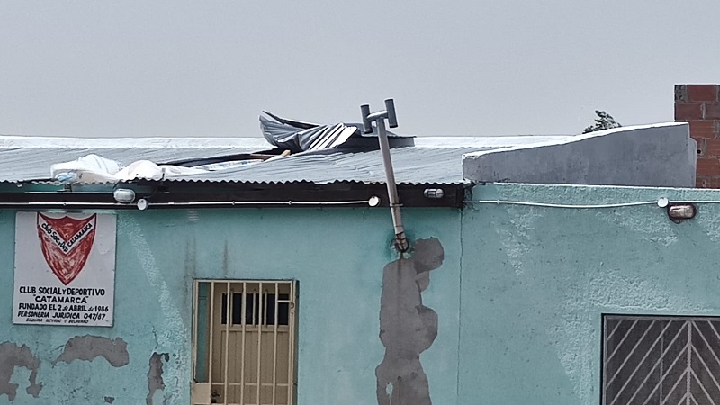 Luego, se conoció que el personal de la Unidad Sexta de Bomberos debió intervenir en la sede del Club Social y Deportivo Catamarca, ubicado en la esquina de calles Moyano y Belgrano, porque las chapas del techo del edificio se habían desprendido. Misma situación se vivió en el Colegio Secundario N°48, donde las chapas que recubren la pared del gimnasio de la institución comenzaron a desprenderse. Esto motivó que agentes de la Dirección de Tránsito interrumpieron la circulación vehicular por calle José Fuchs durante algunas horas.
