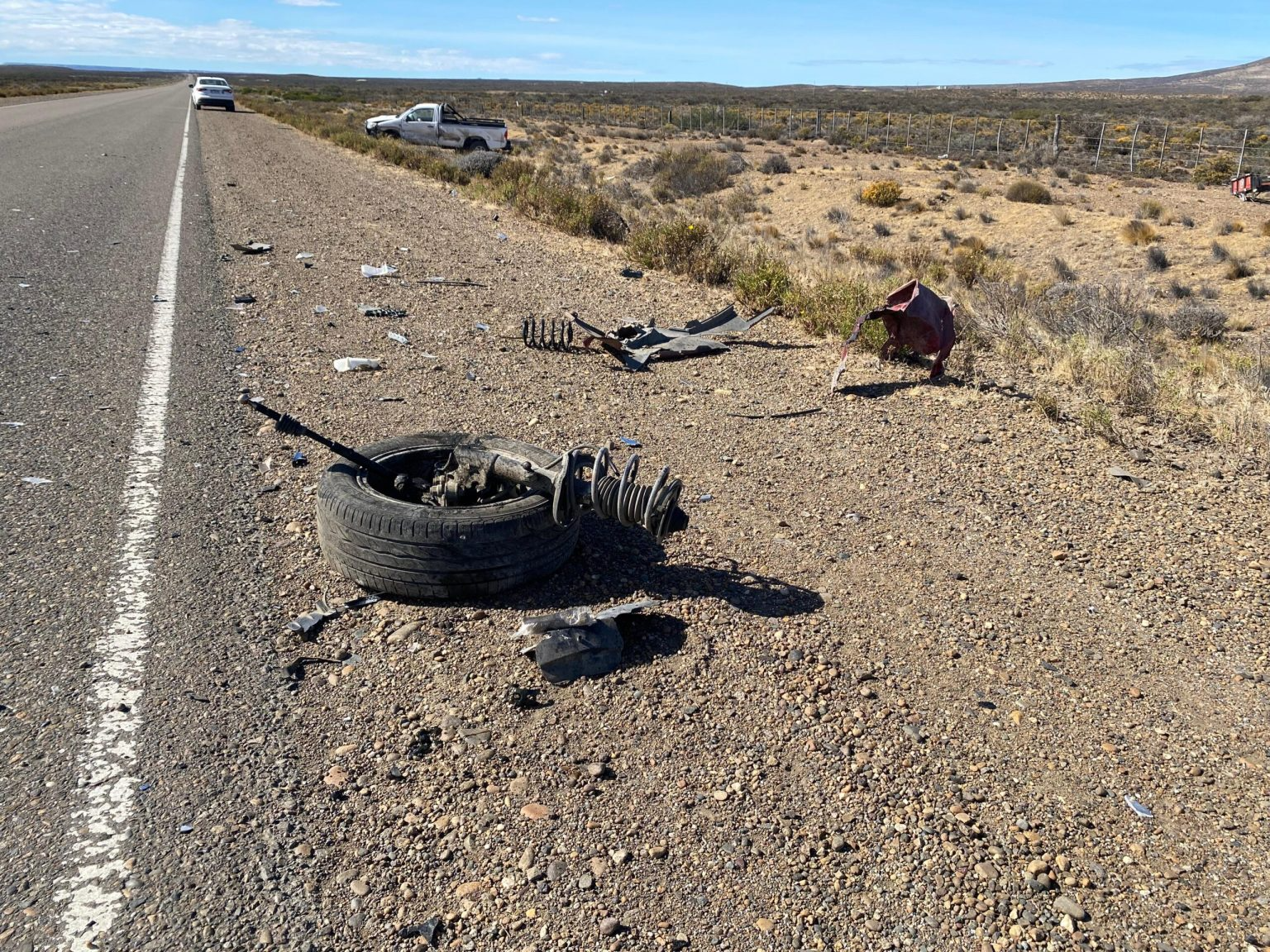 En sentido contrario circulaba una camioneta Toyota Hilux, conducida por un vecino de Caleta Olivia que se dirigía a Ushuaia con fines turísticos. En esas circunstancias se produjo el impacto entre ambos vehículos, lo que provocó severos daños materiales, dejando a las unidades visiblemente dañadas tanto sobre la calzada como en la banquina.