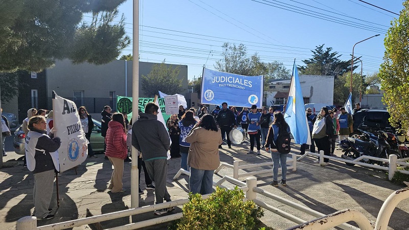 La columna conformada por integrantes de ADOSAC, Judiciales, ATE y la CTA-Autónoma partió desde Plaza San Martín rumbo a la sede local de la Caja de Previsión Social. Luego de concretar una primera parada en ese lugar, y de detenerse por unos instantes en el Hospital Distrital, siguieron camino hacia el Honorable Concejo Deliberante para hacerse presentes en la Segunda Sesión Ordinada del año.