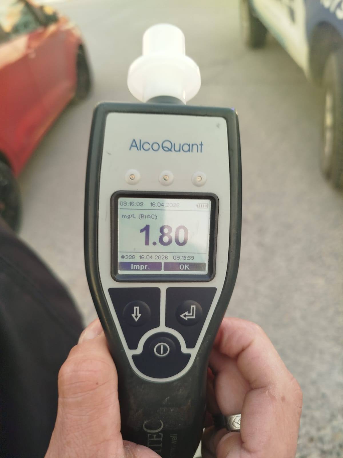 Posteriormente, se le practicó el test de alcoholemia, el cual arrojó un resultado positivo de 1,80 gramos de alcohol por litro de sangre, superando ampliamente el límite permitido.