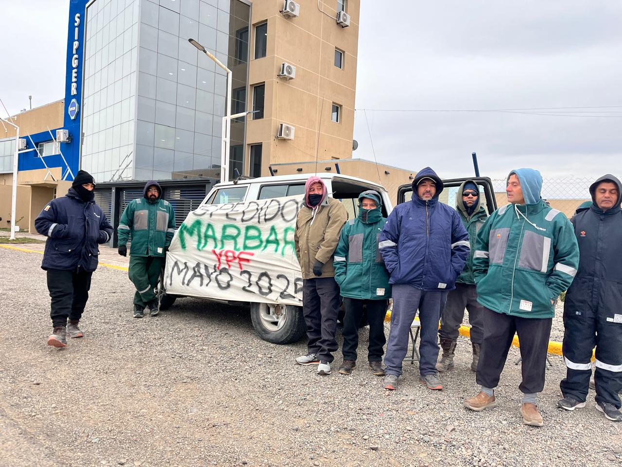 Un grupo de trabajadores petroleros despedidos de la empresa Marbar continúa con su medida de protesta frente a la sede del Sindicato Petrolero, Gas Privado y Energías Renovables en Pico Truncado, donde este lunes difundieron un nuevo comunicado al cumplirse el quinto día de permanencia en el lugar.