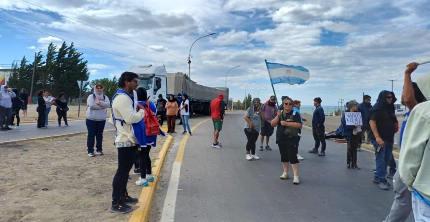Municipales de Caleta Olivia protestan sobre la Ruta 3 por la falta de pago del aguinaldo