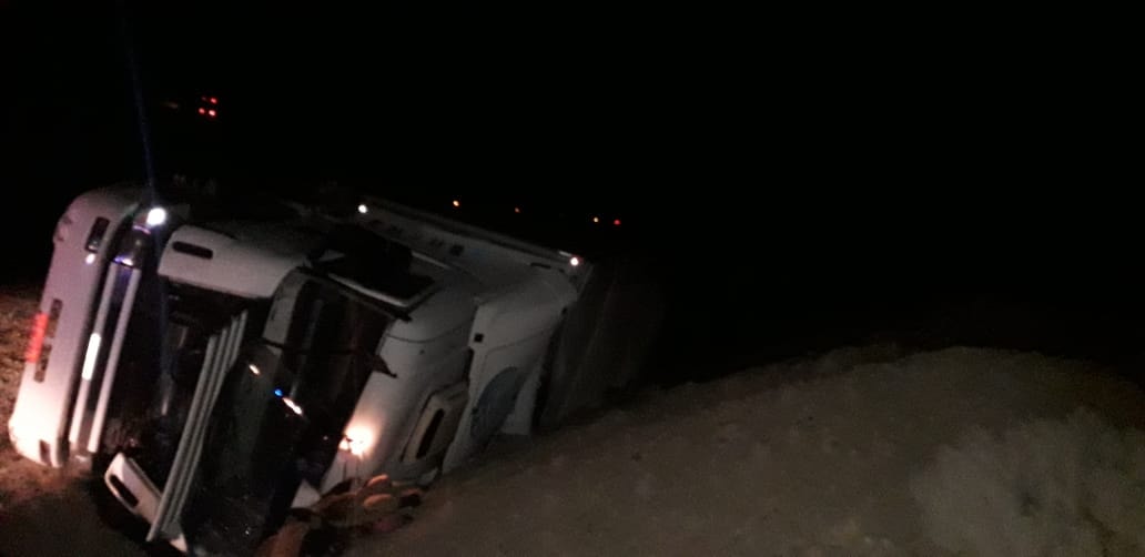 Un camión volcó en cercanías de Ramón Santos