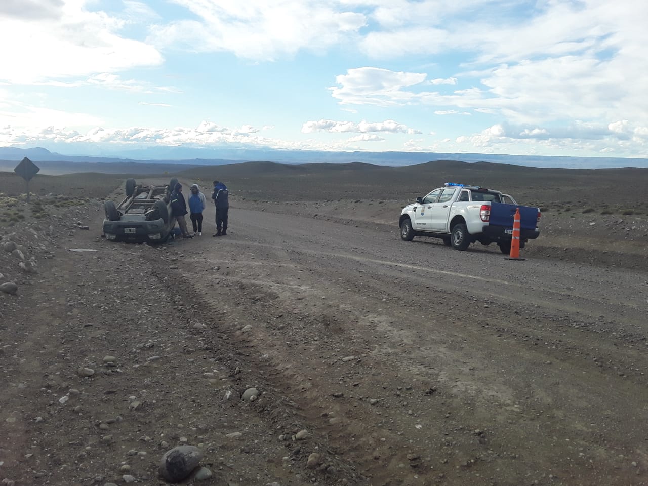 Lago Posadas: volcó una camioneta y sus dos ocupantes salieron ilesos